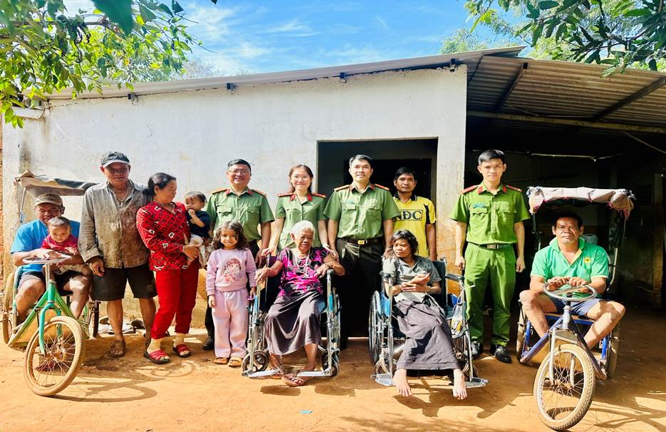 Cũng trong dịp này, Công an xã Phú Riềng cũng đến thăm, tặng 2 chiếc xe lăn cho 2 gia đình người đồng bào dân tộc thiểu số S’tiêng bị khuyết tật, có hoàn cảnh khó khăn tại thôn Phú Thuận.