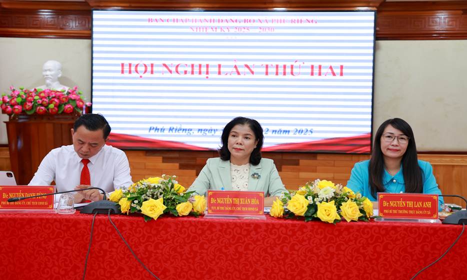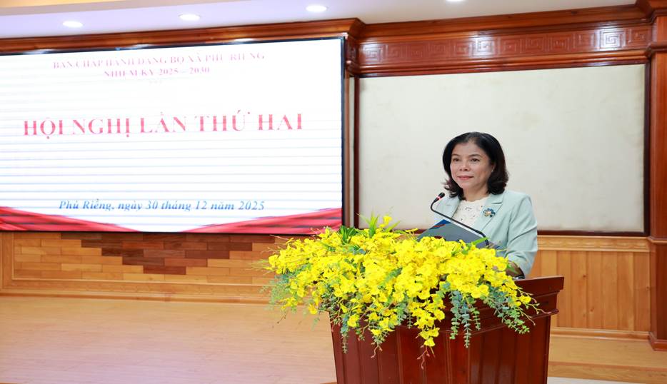 Sáng nay 30-12, Đảng ủy xã Phú Riềng tổ chức hội nghị ban chấp hành Đảng bộ lần thứ 2, nhiệm kỳ 2025-2030 nhằm đánh giá tình hình thực hiện Nghị quyết Ban chấp hành Đảng bộ năm 2025, phương hướng, nhiệm vụ năm 2026. Đồng chí Tạ Thu Thủy, Phó Chủ nhiệm Ủy ban Kiểm tra Tỉnh ủy về dự.