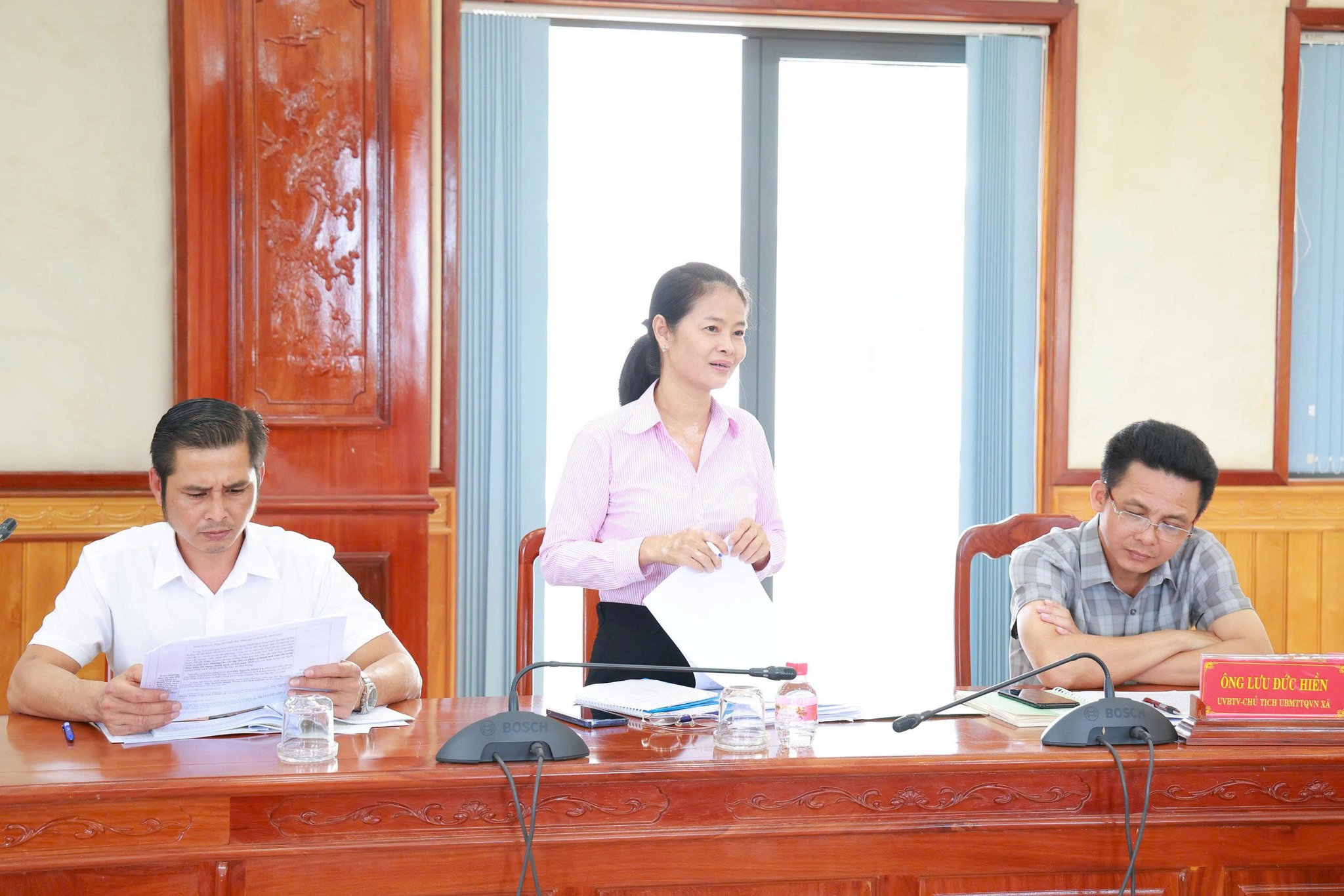 Đồng chí Nguyễn Thị Xuân Hòa, Tỉnh ủy viên, Bí thư Đảng ủy xã phát biểu chỉ đạo hội nghị.