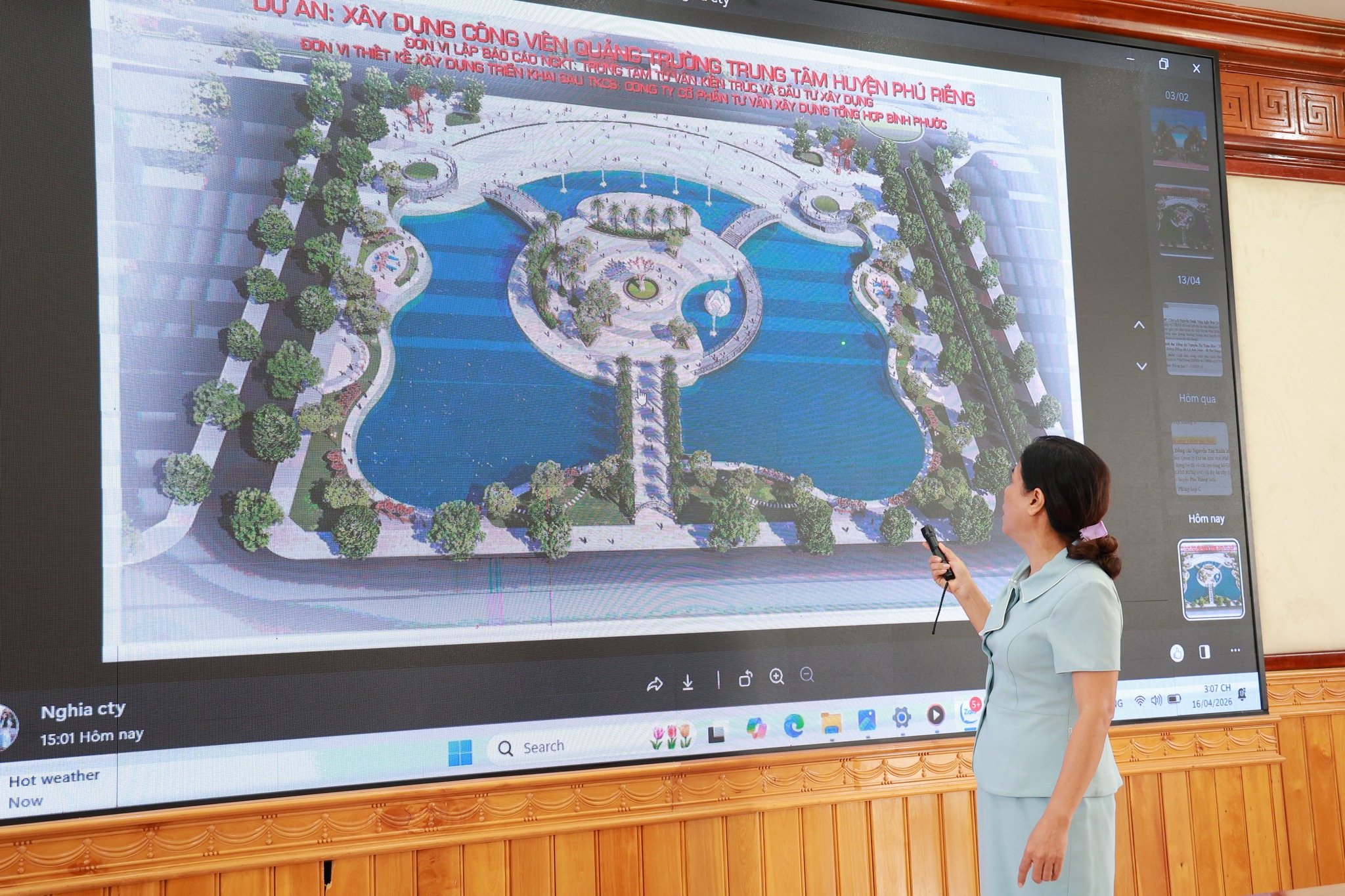 Tại buổi làm việc, lãnh đạo xã Phú Riềng và lãnh đạo Ban Quản lý Dự án khu vực Phú Riềng đã tập trung trao đổi, góp ý, cho ý kiến về phương án thiết kế chi tiết; trong đó làm rõ thêm các nội dung về bố cục, hạ tầng kỹ thuật, cảnh quan, điện chiếu sáng và quy mô một số hạng mục. Một số ý kiến đề nghị nghiên cứu điều chỉnh chi tiết, bảo đảm tính hợp lý và hiệu quả sử dụng phù hợp với điều kiện thực tế sau sáp nhập…