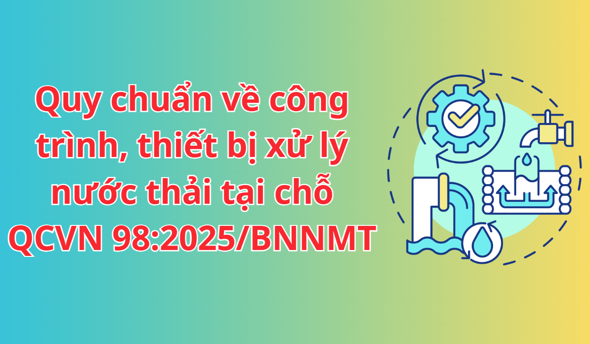Ngày 27/8/2025, Bộ Nông nghiệp và Môi trường đã ban hành Thông tư số 53/2025/TT-BNNMT về việc ban hành Quy chuẩn kỹ thuật quốc gia về công trình, thiết bị xử lý nước thải tại chỗ (QCVN 98:2025/BNNMT). Thông tư này có hiệu lực thi hành từ ngày 26/02/2026.