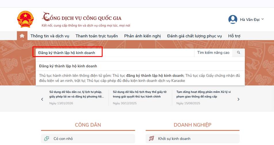 Người dân truy cập Cổng Dịch vụ công và đăng nhập bằng tài khoản cá nhân.