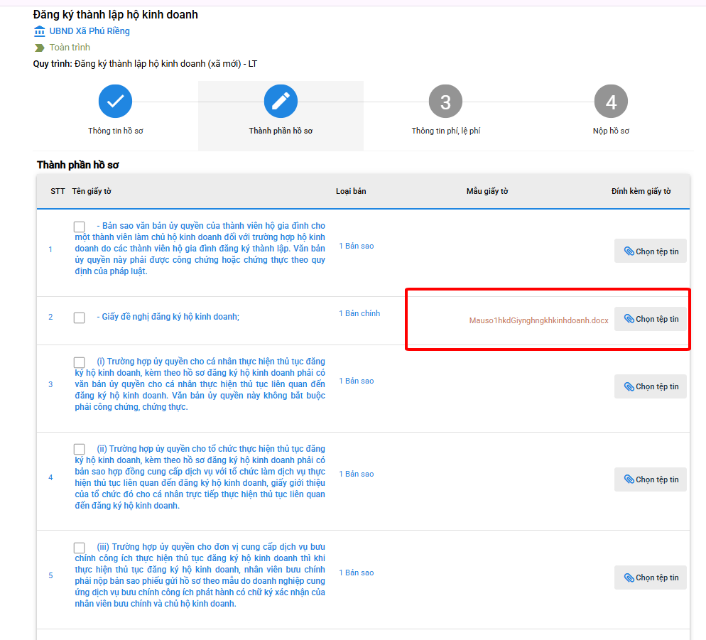 - Tải mẫu Giấy đề nghị đăng ký hộ kinh doanh, điền đầy đủ thông tin và đính kèm vào hệ thống.